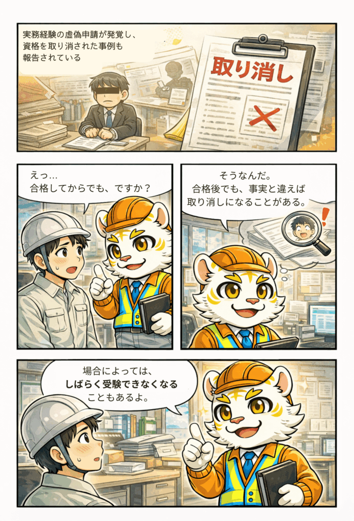 ・実務経歴のごまかしがバレた場合、資格のはく奪と3年間の受検禁止