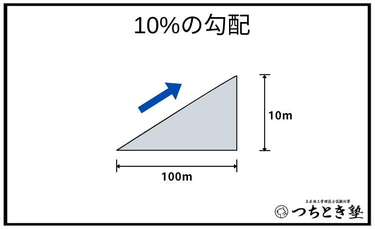勾配10%=10m(垂直距離) / 100m(水平距離)×100