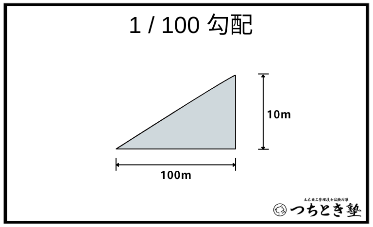 1/100 の勾配は、「水平の長さが100」で「高さが1」の傾きを示したものです。
