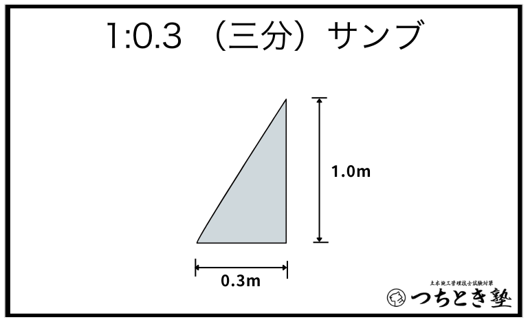 このページの中間くらいに勾配の比率の説明の図がありますが1:03(サンブ)だと垂直1m、水平距離0.3mじゃないんですか?
